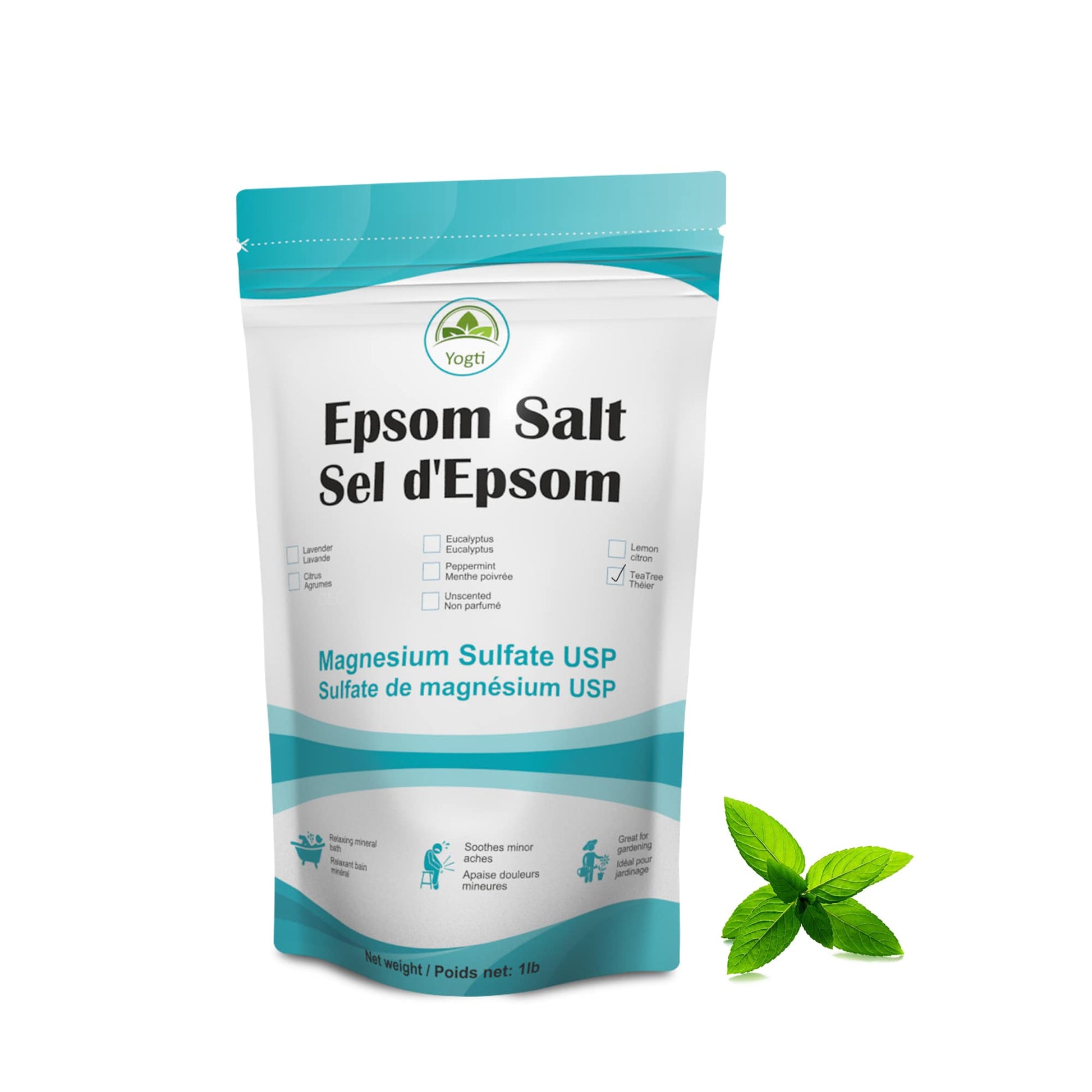- One resealable 10-pound bag of Yogti Epsom Salt with Tea Tree Oil